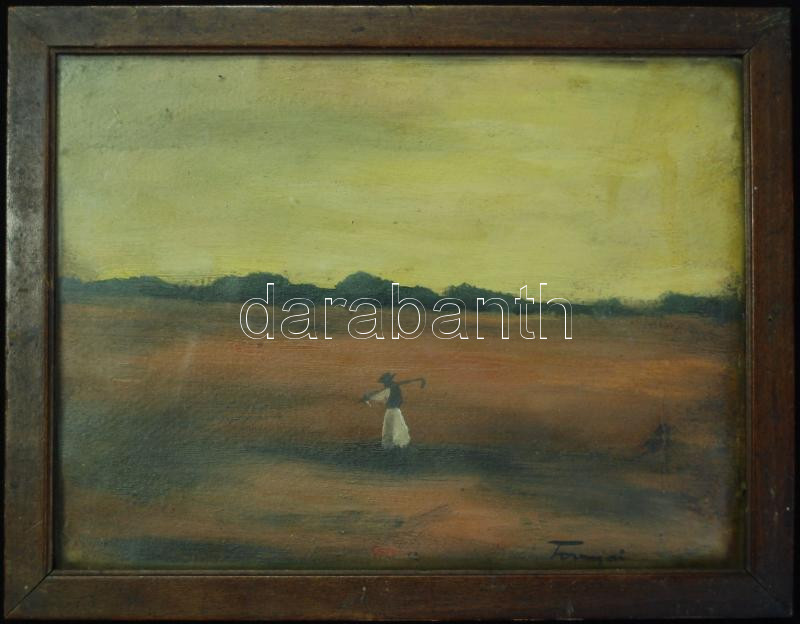Tornyai jelzéssel: Tájkép alakkal, olaj, karton, kerettel 21×27 cm