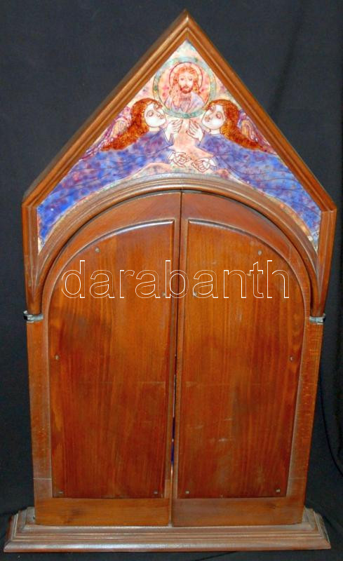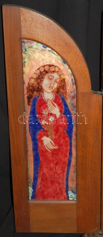 Zsóri Balogh Erzsébet: Tűzzománc szárnyasoltár fa kerettel. /