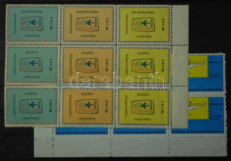 1967-1972 Légipostabélyeg kiállítás levélzáró 9-es tömb + Belgica'72 bélyegkiállítás levélzáró 6-os tömb