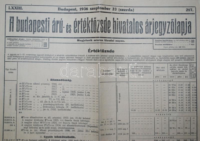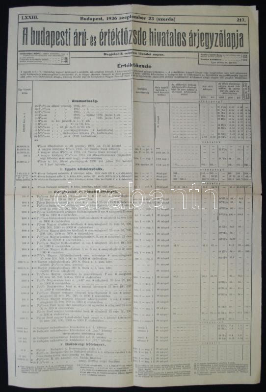 https://www.darabanth.com/en/169-Online-auction/169.0/Other-collectibles/Printed-Materials~4000025/1936-szept-23-A-budapesti-aru-es-ertektozsde-hivatalos-arjegyzolapja~II566134