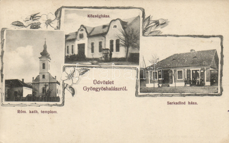 Gyöngyöshalász Községháza, Sarkadiné háza, Római katolikus templom (EK...