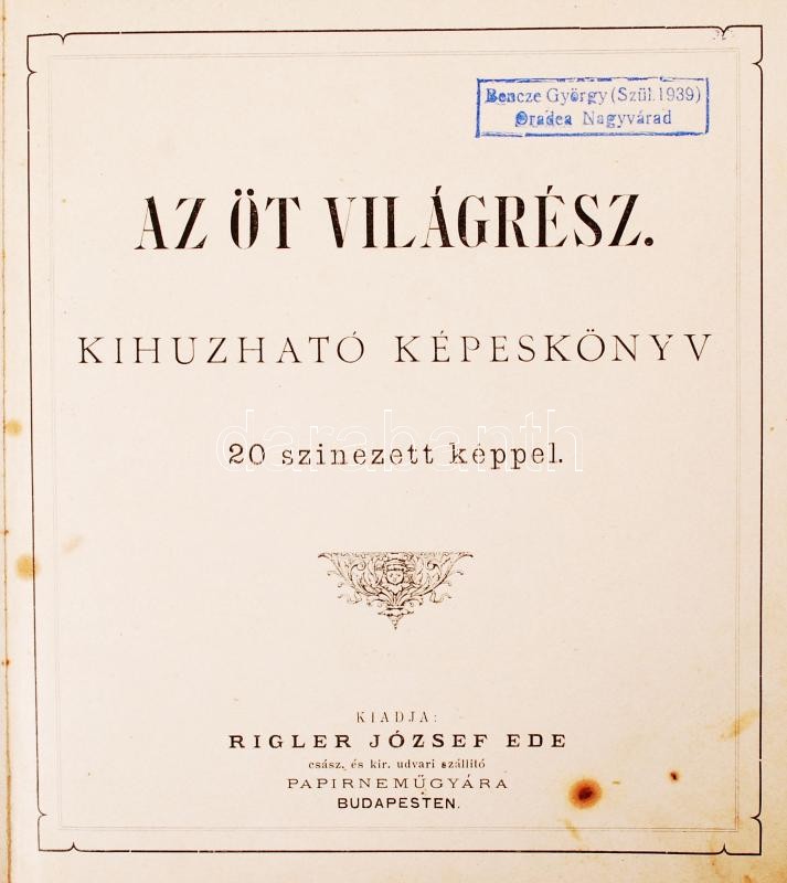 Az öt világrész. Kihuzható képeskönyv 20 szinezett képpel. (Chromolito... https://www.darabanth.com/en/17-Major-auction/17.1/Art-and-collectibles/Books-travelling-cities~5406/Az-ot-vilagresz-Kihuzhato-kepeskonyv-20-szinezett-keppel-Chromolitografiak-Bp-cca-18~II790037
