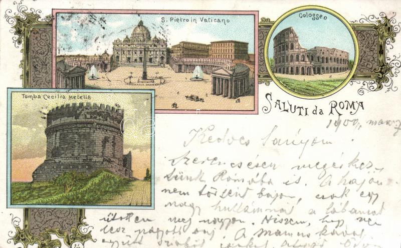 Rome, Roma; S. Pietro in Vaticano, Colosseo, Tomba Cecilia Metella / church, colosseum, tomb, Art Nouveau litho