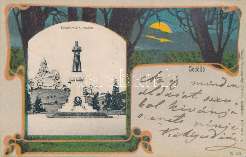 Gödöllő Erzsébet királyné szobra, Nemesánszky Józsefné kiadása, Art Nouveau, litho