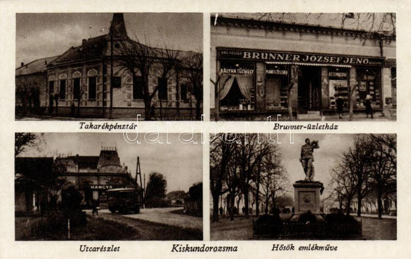 Kiskundorozsma, Brunner-üzletház, Hangya, hősi emlékmű