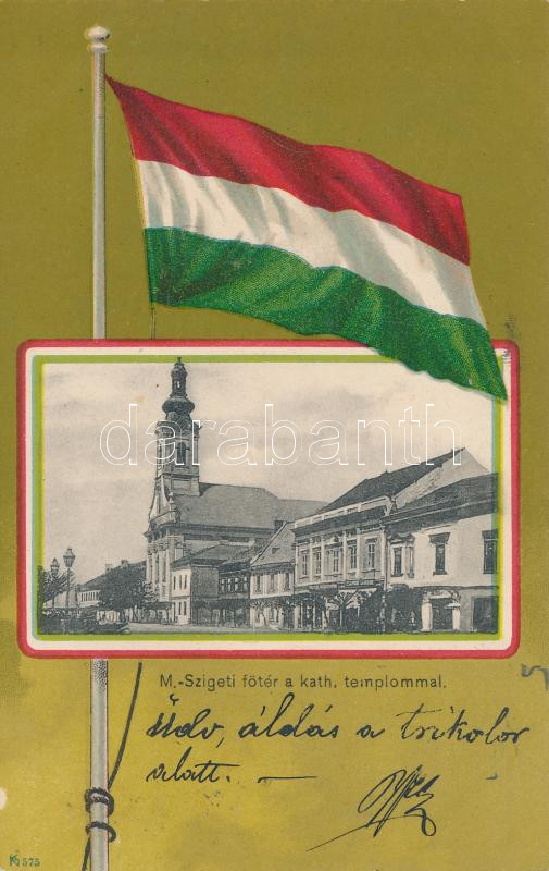 https://www.darabanth.com/en/17-Major-auction/17.1/Hungarian-postcards/Transylvania~5483/Maramarossziget-Fo-ter-a-Katolikus-templommal-magyar-zaszlo-Kaufmann-Abraham-kiadasa-Mai~II792210