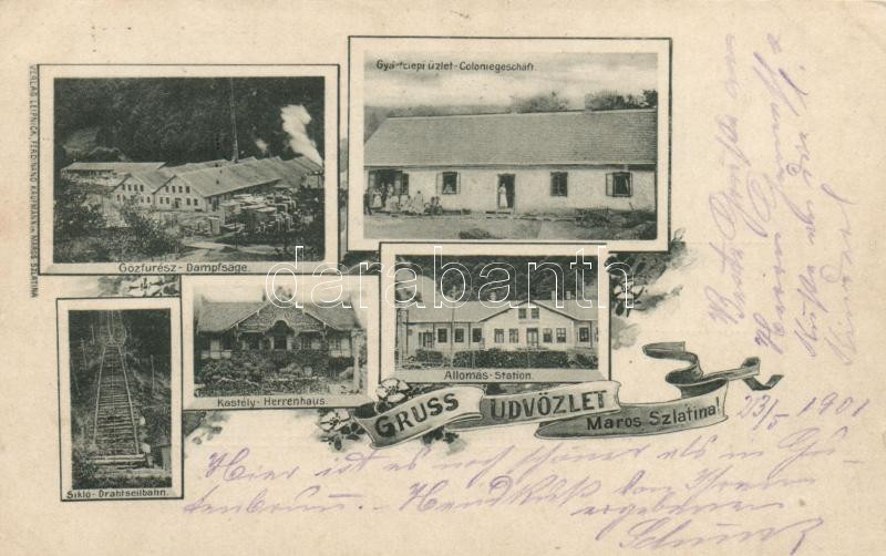 Marosszlatina, Gyártelep, vasútállomás, sikló / factory plant, railway station funicular; floral