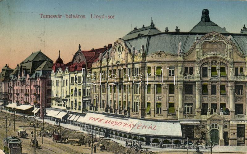 Temesvár, Lloyd sor, Kávéház, Reisz Alfréd üzlete, Uhrmann Henrik kiad...