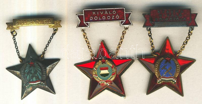 1953. "Sztahanovista" zománcozott kitüntetés + "Szakma Kiváló Dolgozója" bordó sorszámozott zománcozott kitüntetés + ~1960. "Kiváló Dolgozó" kitüntetés T:2,2-