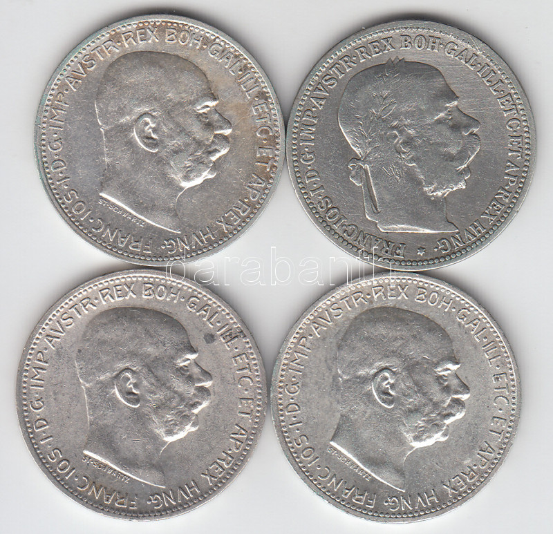 Austria 1893-1915. 1 Corona Ag (4x) C:XF,VF