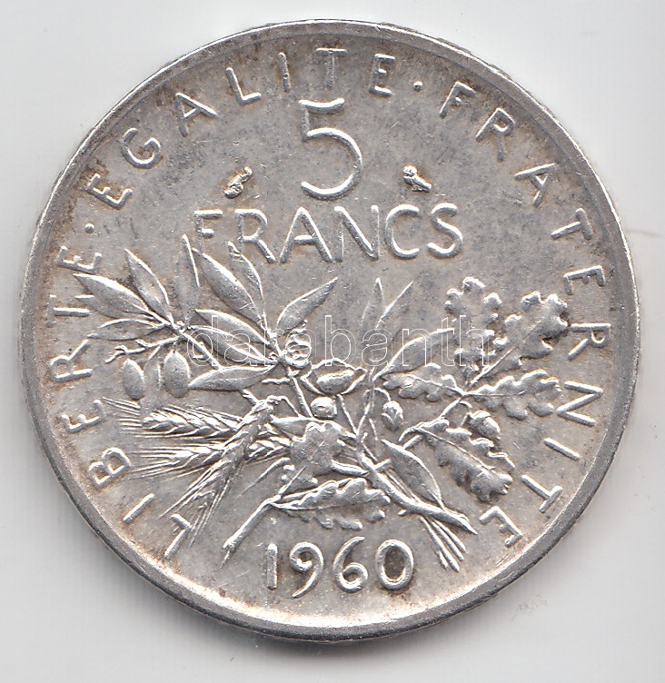 https://www.darabanth.com/en/170-Online-auction/170.0/Numismatics/Foreign-coins~500131/Franciaorszag-1960-5Fr-Ag-T2-patina-3Cbr3EFrance-1960-5-Francs-Ag-CXF-patina~II564544