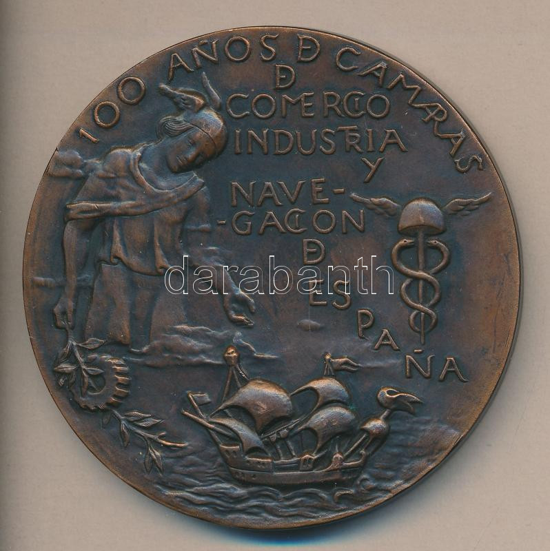 Spanyolország 1986. "100 éves a Kereskedelmi és Hajózási Iparkamara" B... https://www.darabanth.com/en/170-Online-auction/170.0/Numismatics/Foreign-precious-commemorative-medals-plaques-badges~500132/Spanyolorszag-1986-100-eves-a-Kereskedelmi-es-Hajozasi-Iparkamara-Br-emlekerem-80mm-T1-~II575057