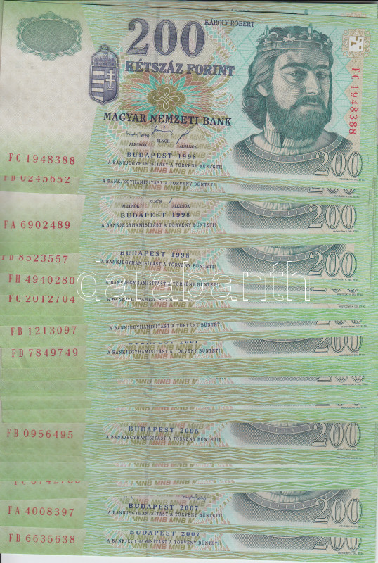 1998-2007. 200Ft 33db, mind különböző évszámmal és betűjellel. T:I-III