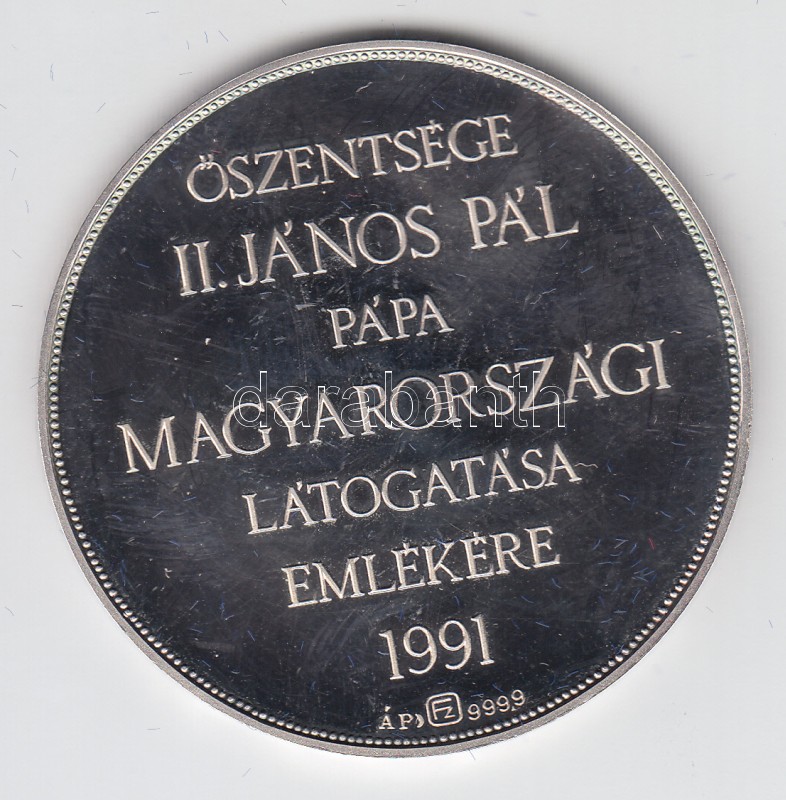 Fülöp Zoltán (1951-) 1991. "Őszentsége II. János Pál pápa magyarországi látogatása emlékére" Ag(999) emlékérem (15,93g/42,5mm) T:PP dísztokban