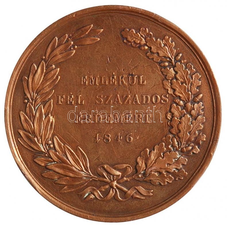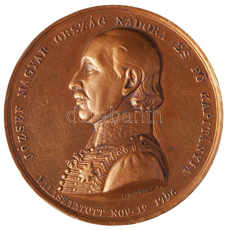 Description: Josef Daniel Boehm (1794-1865) 1846. József nádor 50 éves nádori jubileum Br emlékérme "JÓZSEF MAGYAR ORSZÁG NÁDORA ÉS FŐ KAPITÁNYA - VÁLASZTATOTT NOV. 12 1796 / EMLÉKÜL FÉL SZÁZADOS ÉRDEMÉRT 1846" (53mm/74g) T:2,2- ph.