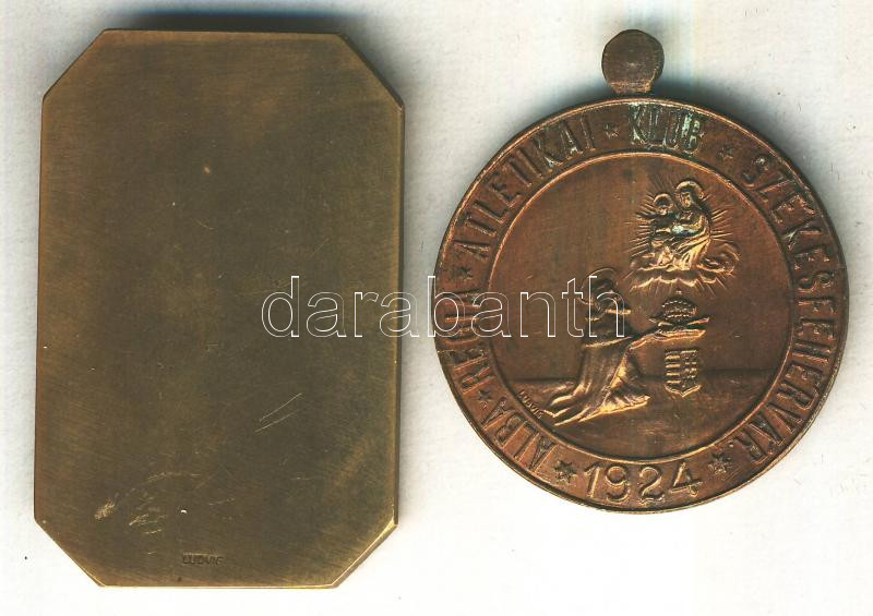 Description: 1927. Székesfehérvár Szabad királyi Város Polgári Lövész Egyesület Br érem (38mm) szign.: Ludvig Bp. T:2 + ~1930."M. Kir. Honvéd Ludovika Akadémia" szögletes Br plakett (50x33mm) T:2
