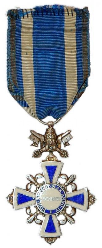 Vatikán 1925. XI. Piusz Pápa jubileumi ezüst lovagkereszt, zománcozva,... https://www.darabanth.com/en/170-Online-auction/170.0/Numismatics/Military~500135/Vatikan-1925-XI-Piusz-Papa-jubileumi-ezust-lovagkereszt-zomancozva-mellszalaggal-serult-f~II477604