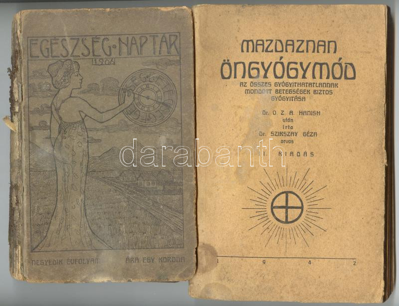 https://www.darabanth.com/en/170-Online-auction/170.0/Other-collectibles/Books-Kitchen-and-garden~500010/1906-Egeszseg-naptar-serult-gerinc-plus-Mazdaznan-gyogymod-1942~II572788