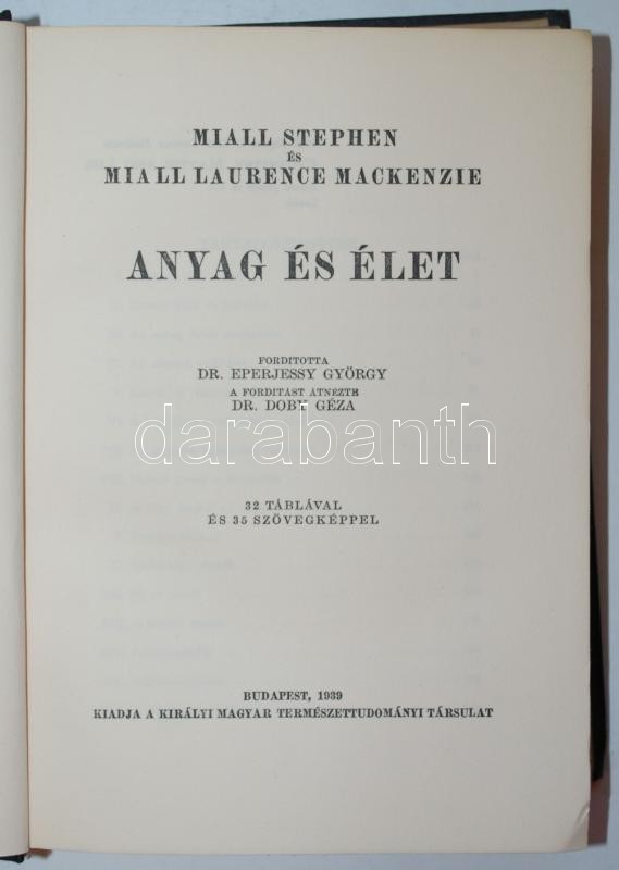 Miall Laurence Mackenzie és Miall Stephen: Anyag és élet, Bp., 1939, K... https://www.darabanth.com/en/170-Online-auction/170.0/Other-collectibles/Books-Science~500041/Miall-Laurence-Mackenzie-es-Miall-Stephen-Anyag-es-elet-Bp-1939-Kiralyi-Magyar-Termeszettu~II571940