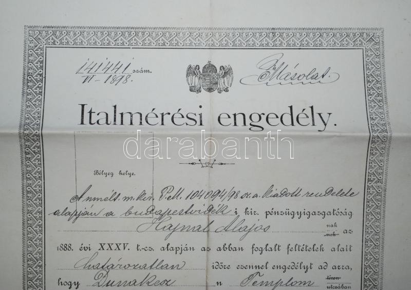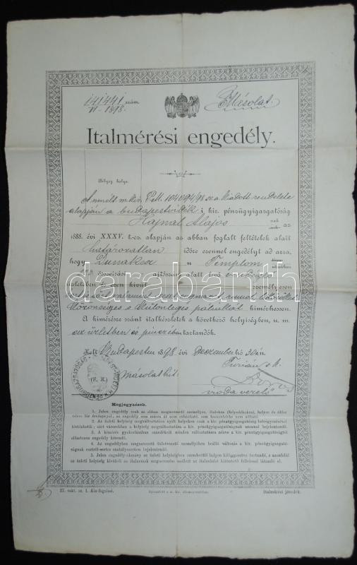 https://www.darabanth.com/en/170-Online-auction/170.0/Other-collectibles/Documents~500020/1898-Dunakeszi-Italmeresi-engedely-masolata~II572364