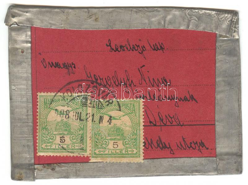 1908 Pezsgősüveg aluminium zárófóliájából készített képeslap Kolozsvárról Dévára küldve / postcard made of alu foil of champagne bottle