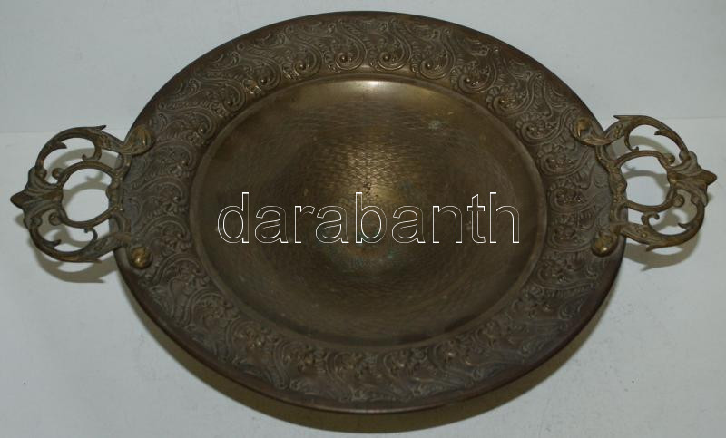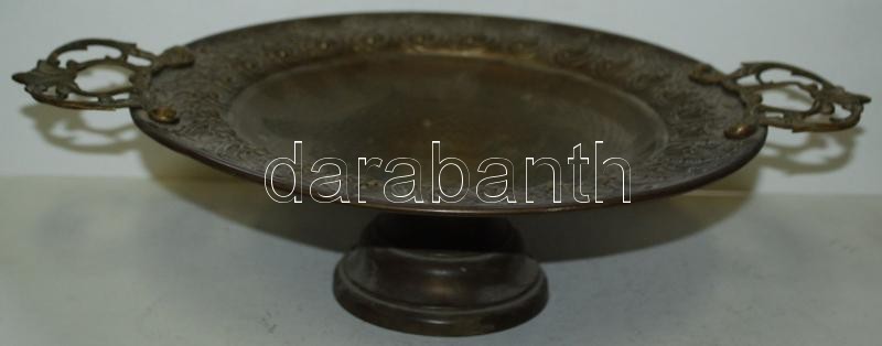 Cca 1900, gazdagon díszített füles kínáló, d: 25 cm, m: 9 cm