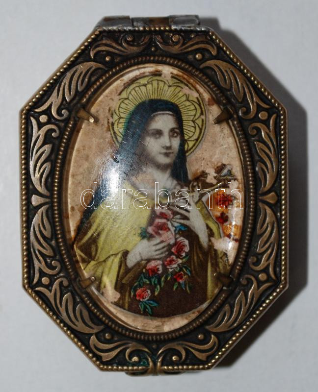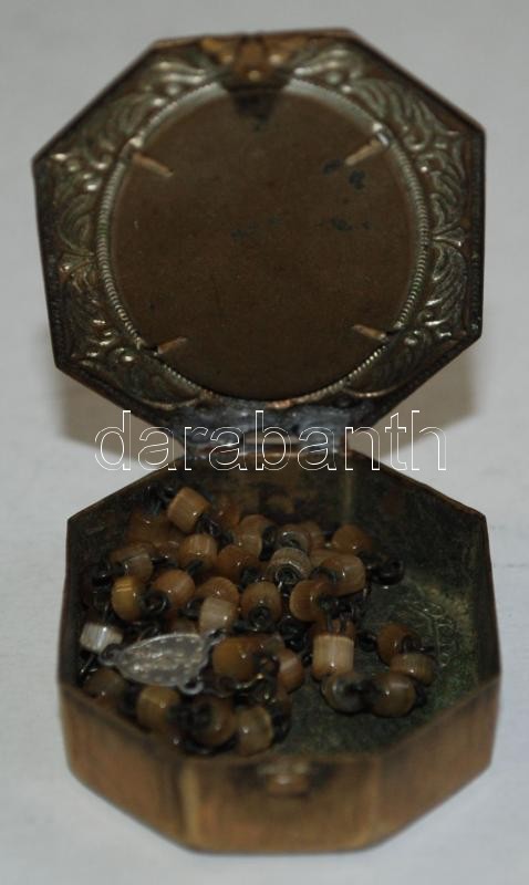 Rózsafüzér tartó, benne a füzérrel, 5× 4 cm