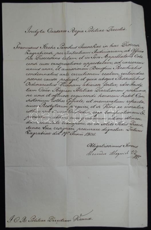 1835 Alagovich Sándor zágrábi püspök által saját kezüleg aláírt levél ... https://www.darabanth.com/en/170-Online-auction/170.0/Other-collectibles/Historical-documents-manuscripts~500021/1835-Alagovich-Sandor-zagrabi-puspok-altal-sajat-kezuleg-alairt-level-a-csaszari-udvarb~II573440