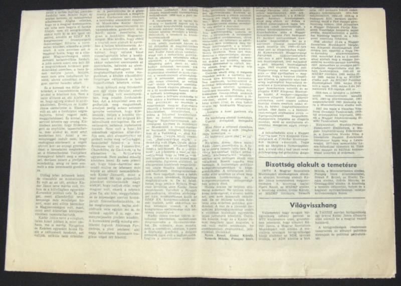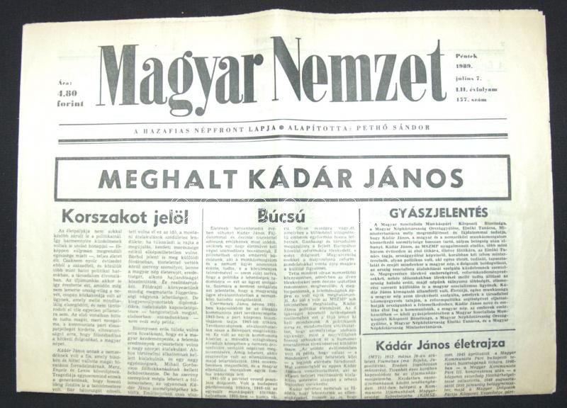 1989 A Magyar Nemzet Kádár János haláláról és az 1956-osok rehabilitációjáról tudósító száma