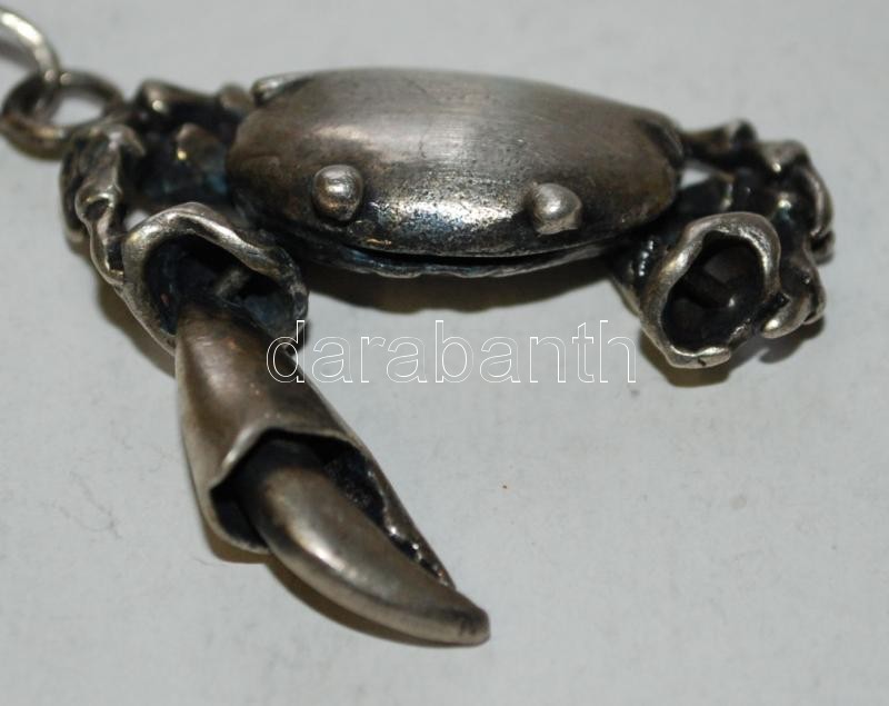 Ezüst rákos kulcstartó, egyik olló hiányzik, jelzett, nettó:29 g