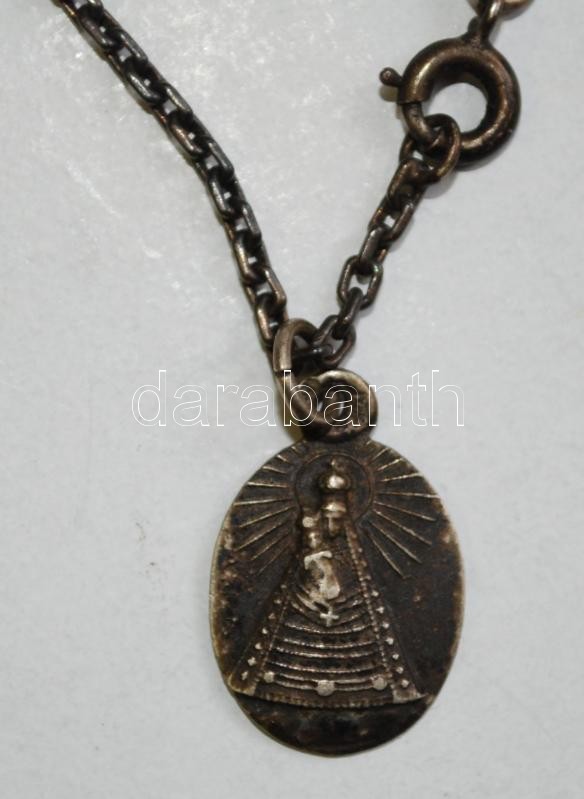 cca 1900 Szűzanyát ábrázoló 3 db ezüst medál ezüst láncon / Silver holy medals on silver chain 12,1g
