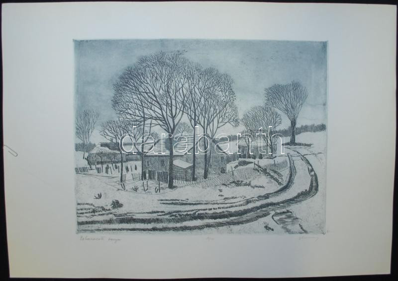 Blahos Rudolf (1917-1986): Behavazott tanya, rézkarc 89/100, papír, je...