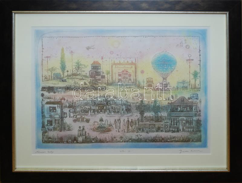 Gross Arnold jelzéssel: Művészek kertje, nyomat, szép üvegezett keretb...