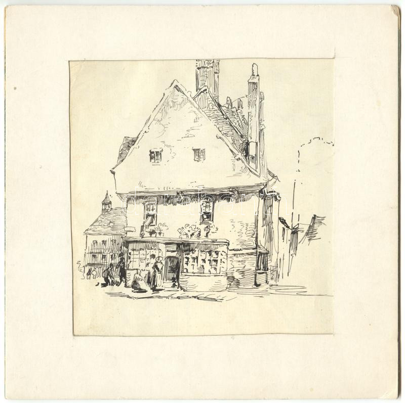 Hoch István (építész): Flamand ház, tus, papír, karton,jelzés nélkül 16×21 cm.
