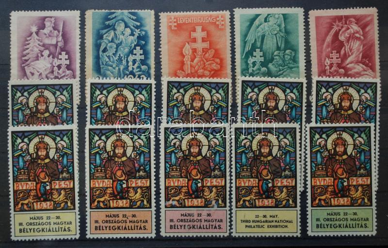 1937 III. Országos Magyar bélyegkiállítás levélzáró sor 10 bélyeggel + 1942 Honvédkarácsony 5 db levélzáró