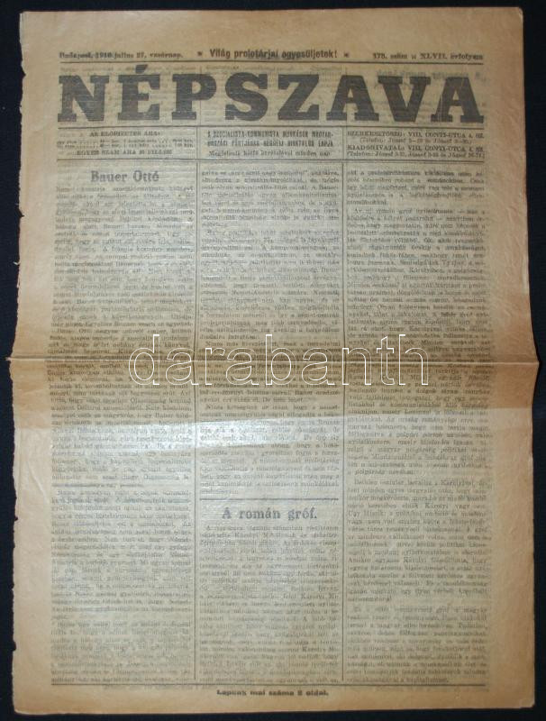 https://www.darabanth.com/en/170-Online-auction/170.0/Other-collectibles/Printed-matters~500002/1919-A-Nepszava-julius-27-i-szama-szep-allapotban~II573369