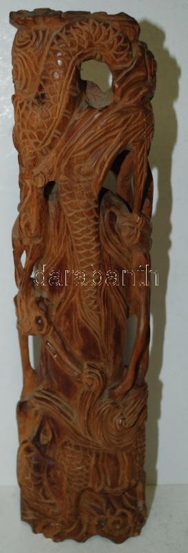 Kézzel faragott fa keleti szobor, jó állapotban, 30 cm