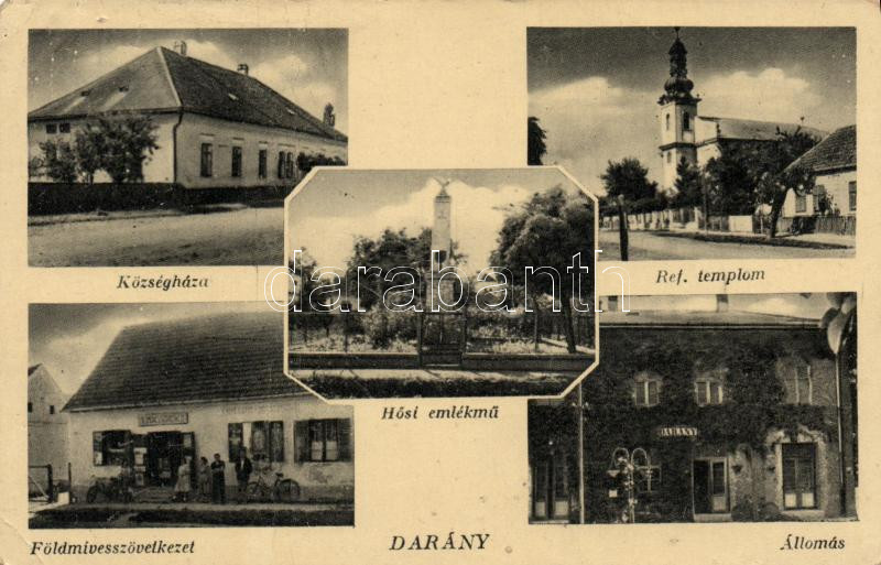 Darány Vasútállomás, Földmívesszövetkezet, Községháza, Hősi emlékmű (f...