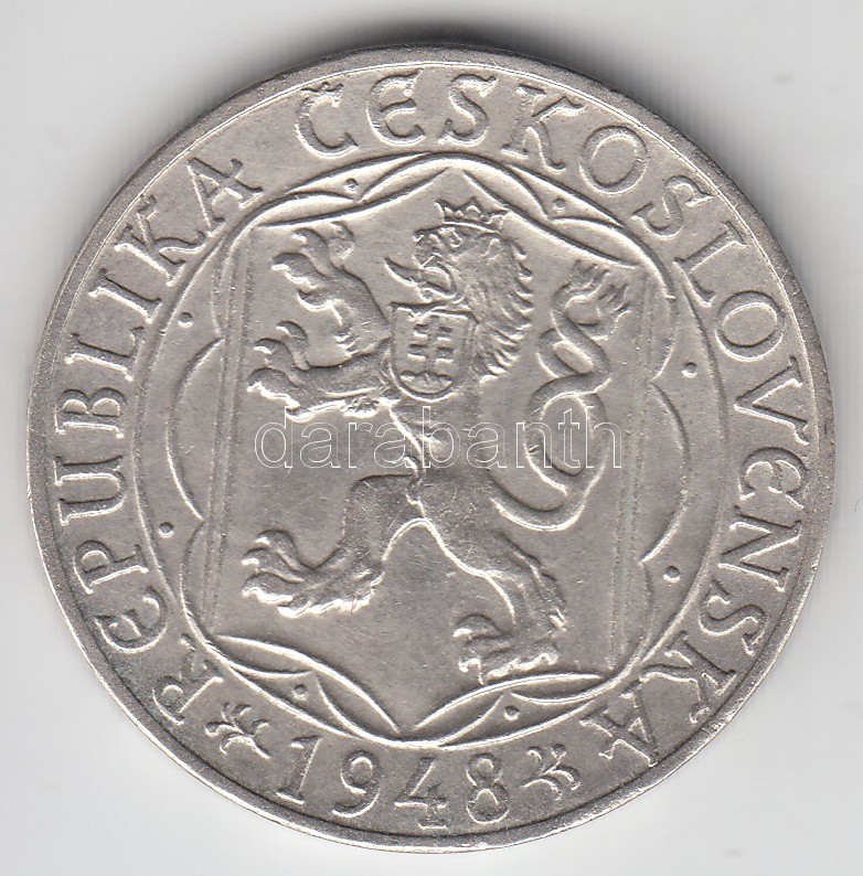 https://www.darabanth.com/en/171-Online-auction/171.0/Numismatics/Foreign-coins~1000139/Csehszlovakia-1948-100K-Ag-Fuggetlenseg-T2-3Cbr3ECzechoslovakia-1948-100-Korun-Ag-Independen~II576377