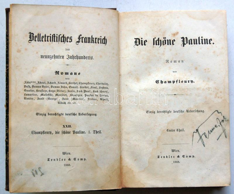 Champfleury: Die schöne Pauline (Roman) vol I-II. Einzig berechtigte d... https://www.darabanth.com/en/171-Online-auction/171.0/Other-collectibles/Books-Books-for-low-starting-price~1000031/Champfleury-Die-schone-Pauline-Roman-vol-I-II-Einzig-berechtigte-deutsche-Uebersetzung-Wien-~II510995