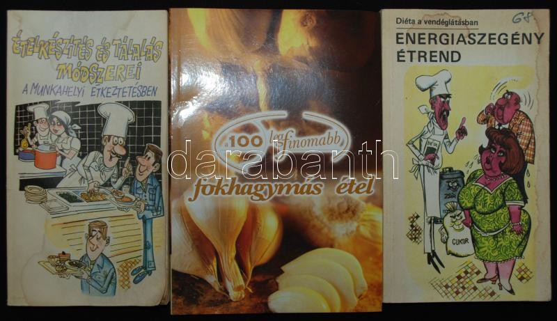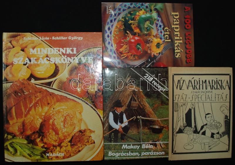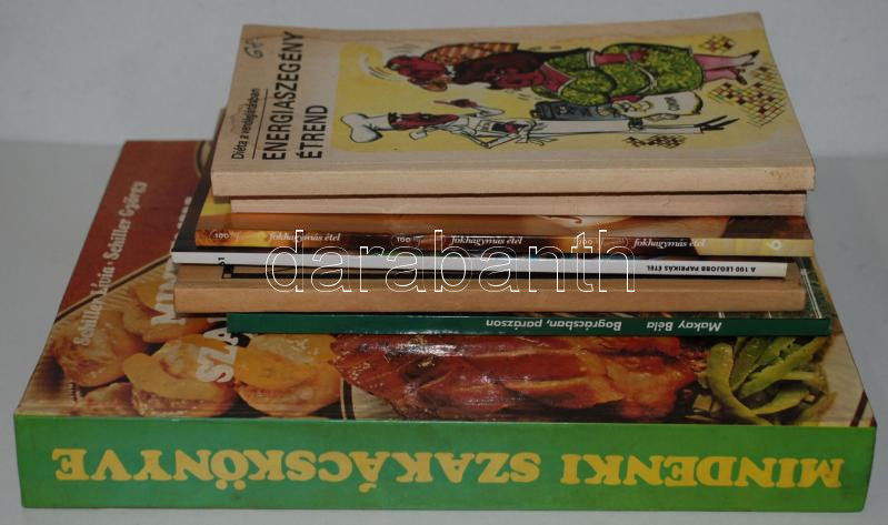 7db szakácskönyv: Energiaszegény étrend, A 100 legfinomabb fokhagymás étel, Vízvári Mariska szakácskönyve, Mindenki szakácskönyve, stb.