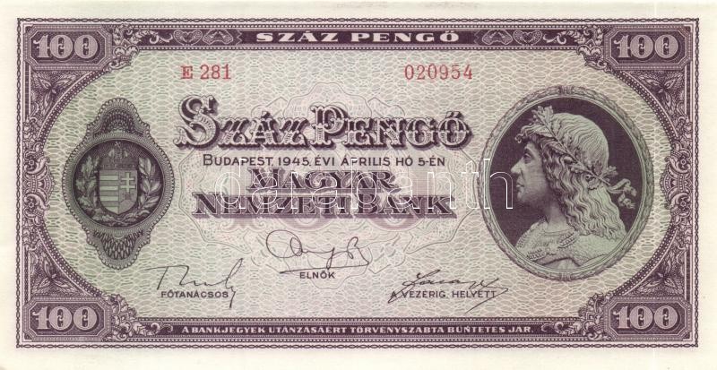 1945. 100P (5x) egymás utáni sorszámmal T:I-(sarokhajlás)