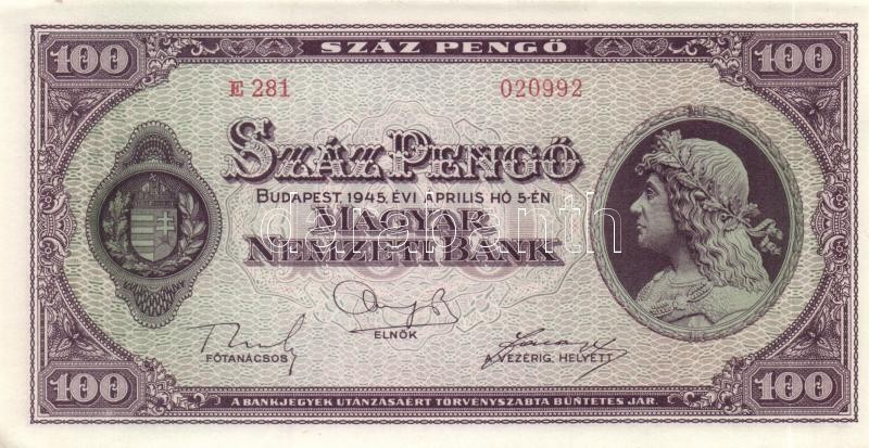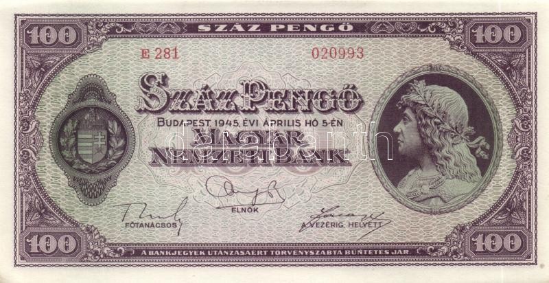 1945. 100P (5x) egymás utáni sorszámmal T:I-(sarokhajlás)
