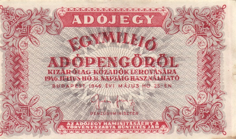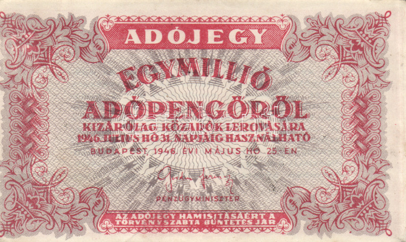 1946. 1.000.000AP (2x) balra tolódott nyomattal mindkettő T:II