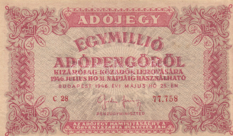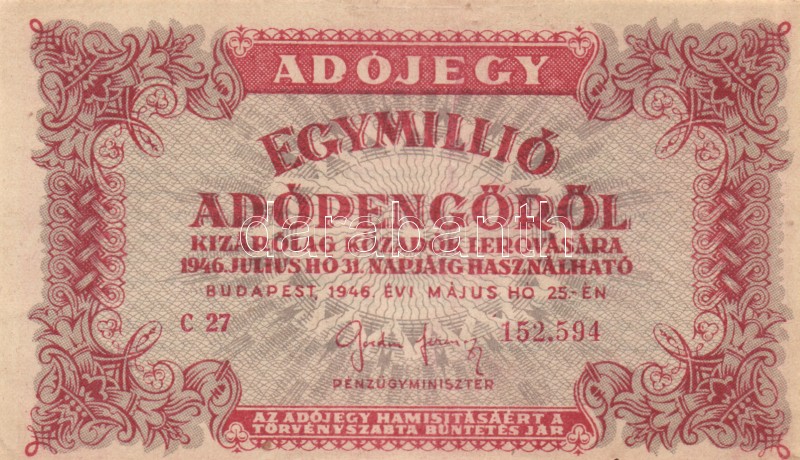 1946. 1.000.000AP (2x) mindkettő fordított címerrel, egyik "amelyeknek...