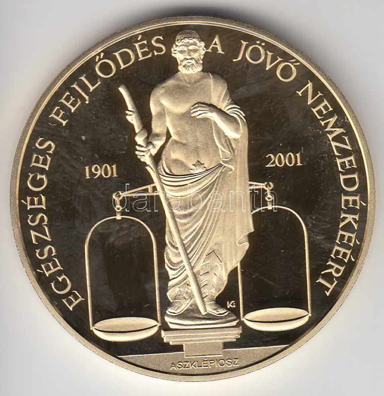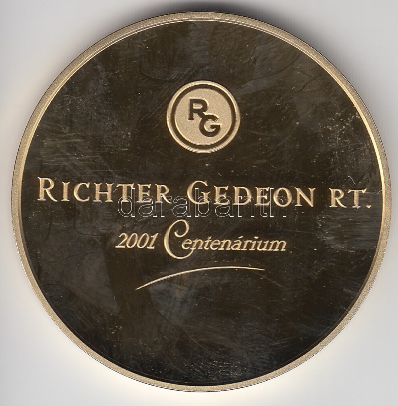 Kósa István (1953) 2001. Richter Gedeon centenárium "Egészséges fejlődés a jövő nemzedékéért" aranyozott ffém emlékérem (42,5mm) T:PP