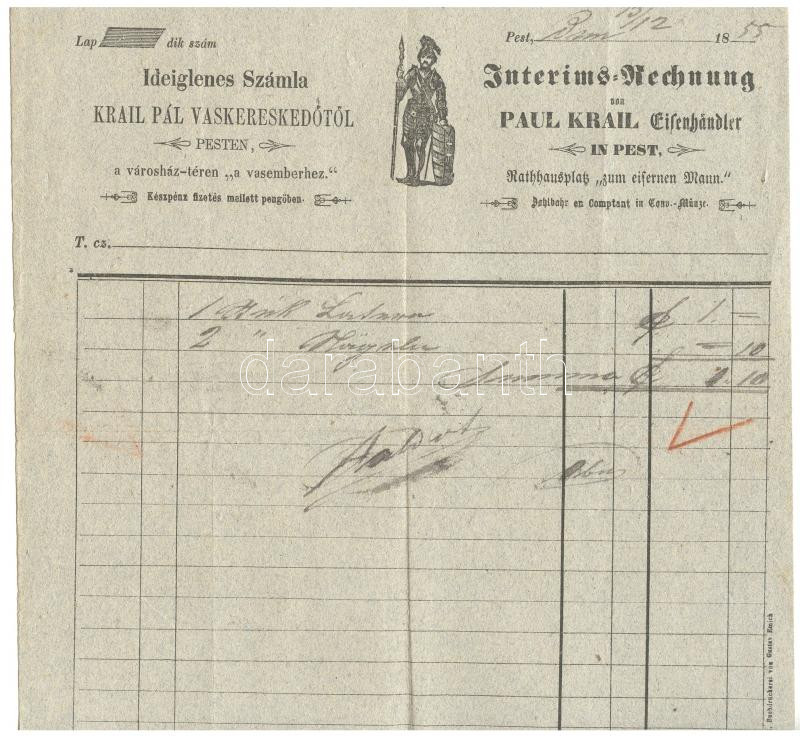 1855 Budapest V. Krail Pál vaskereskedő számla