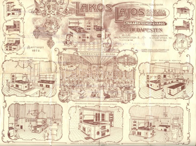 Lakos Lajos takaréktűzhely-gyáros díszes reklámos számlája és egy Hube...