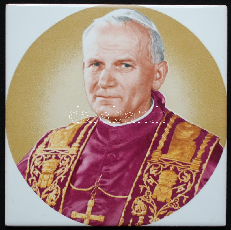 II. János Pál pápa fali csempe, jelzett J. Felbermair, 15×15 cm