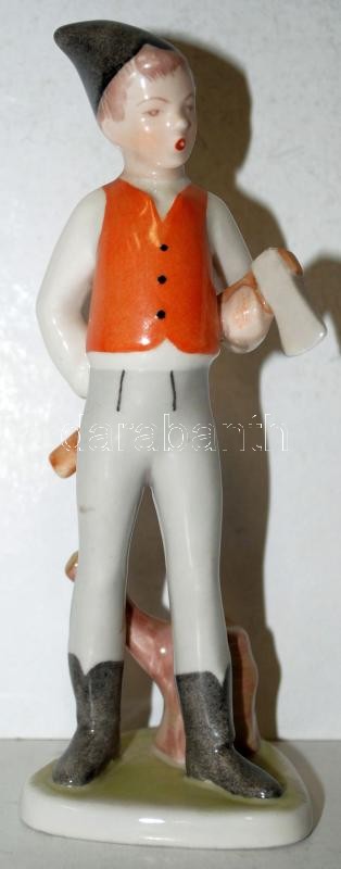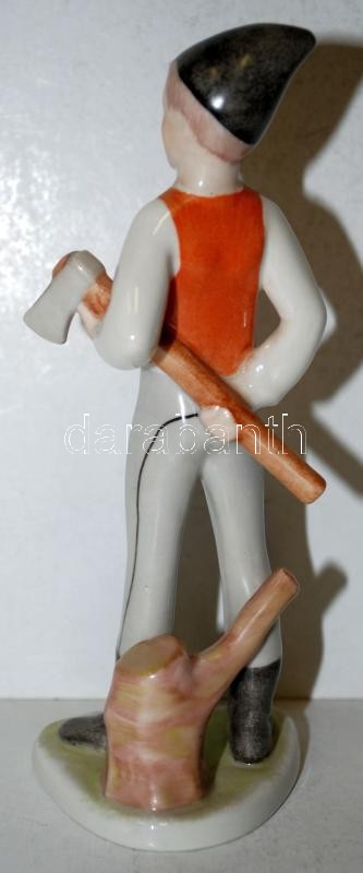 Aquincum porcelán kisfiú baltával, kézzel festett, jelzett, hibátlan állapot /